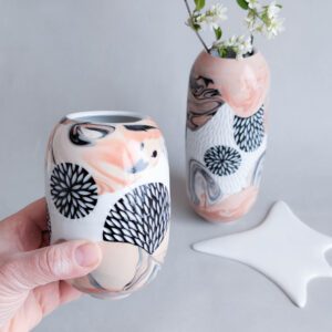 Všechno nádobí vzniká v mé dílně od návrhu tvaru, přes tvorbu forem až po závěrečnou dekoraci. Porcelánové hrnky i misky jsou atestovány pro styk s potravinami a jsou vhodné pro studené i teplé nápoje a pokrmy. Můžete je také bez obav mýt v myčce, nebo používat v mikrovlnné troubě.
