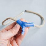 Matný neglazovaný porcelán se může nošením ušpinit, ale když ho umyjete vodou mýdlem a kartáčkem, bude zase jako nový a nijak mu to neublíží. Jen si dejte pozor na kovové a textilní části a náhrdelník brzy usušte.