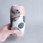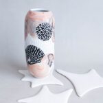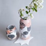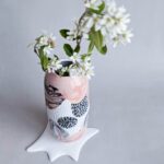 Všechno nádobí vzniká v mé dílně od návrhu tvaru, přes tvorbu forem až po závěrečnou dekoraci. Váza je vyrobena z francouzského porcelánu glazované transparentní glazurou.