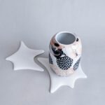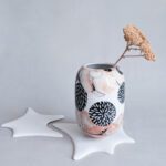 Všechno nádobí vzniká v mé dílně od návrhu tvaru, přes tvorbu forem až po závěrečnou dekoraci. Váza je vyrobena z francouzského porcelánu glazované transparentní glazurou.